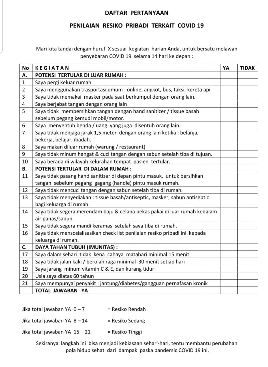 *Berhati-hati sehingga tidak serta merta menyentuh rel pegangan tangan, gagang pintu, dst sebelum di spray antiseptik*